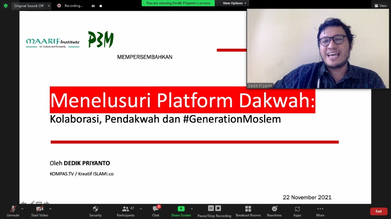 MAARIF Institute bekerjasama dengan P3M, menyelenggarakan Pelatihan Literasi Digital untuk Ulama Muda. Kegiatan yang dilakukan melalui webinar ini dilaksanakan selama dua hari pada 22-23 November 2021 dengan menghadirkan sejumlah narasumber, di antaranya: Hengky Ferdiansyah (aktif di el-Bukhari Institute), Alvin Nur Choironi (aktif di el-Bukhari Institute), dan  Dedik Priyanto, (aktivis dakwah digital dari islami.co). Acara ini dimoderatori oleh Hijroatul Maghfiroh.